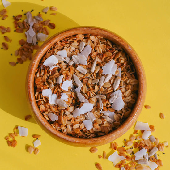 朝食にエネルギーが欲しい時に、ミルク・ヨーグルトと合わせておいしく召し上がれます。グラノーラの軽い食感と香ばしさをそのまま味わっていただくため、開封後はなるべく早めにお召し上がりいただくと、風味がしっかり感じられます。アイスにトッピングして、デザートとして楽しむのもおすすめです。